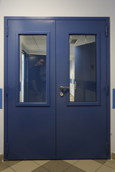 Противопожарная алюминиевая дверь синего цвета в Твери