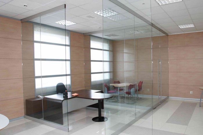 Противопожарная безрамная дверь в переговорную в Твери