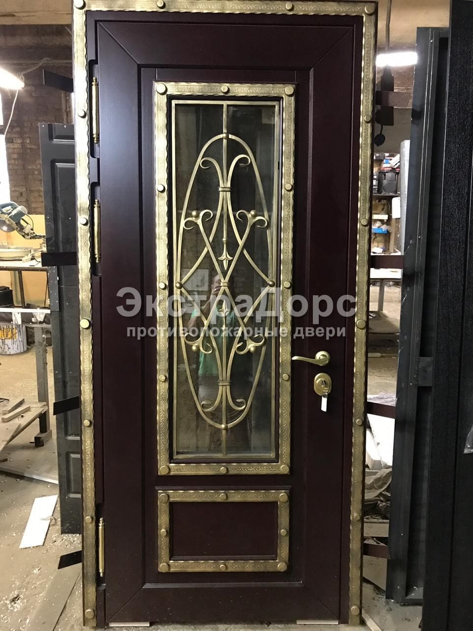 Противопожарная остекленная дверь с отделкой МДФ и ковкой в Твери